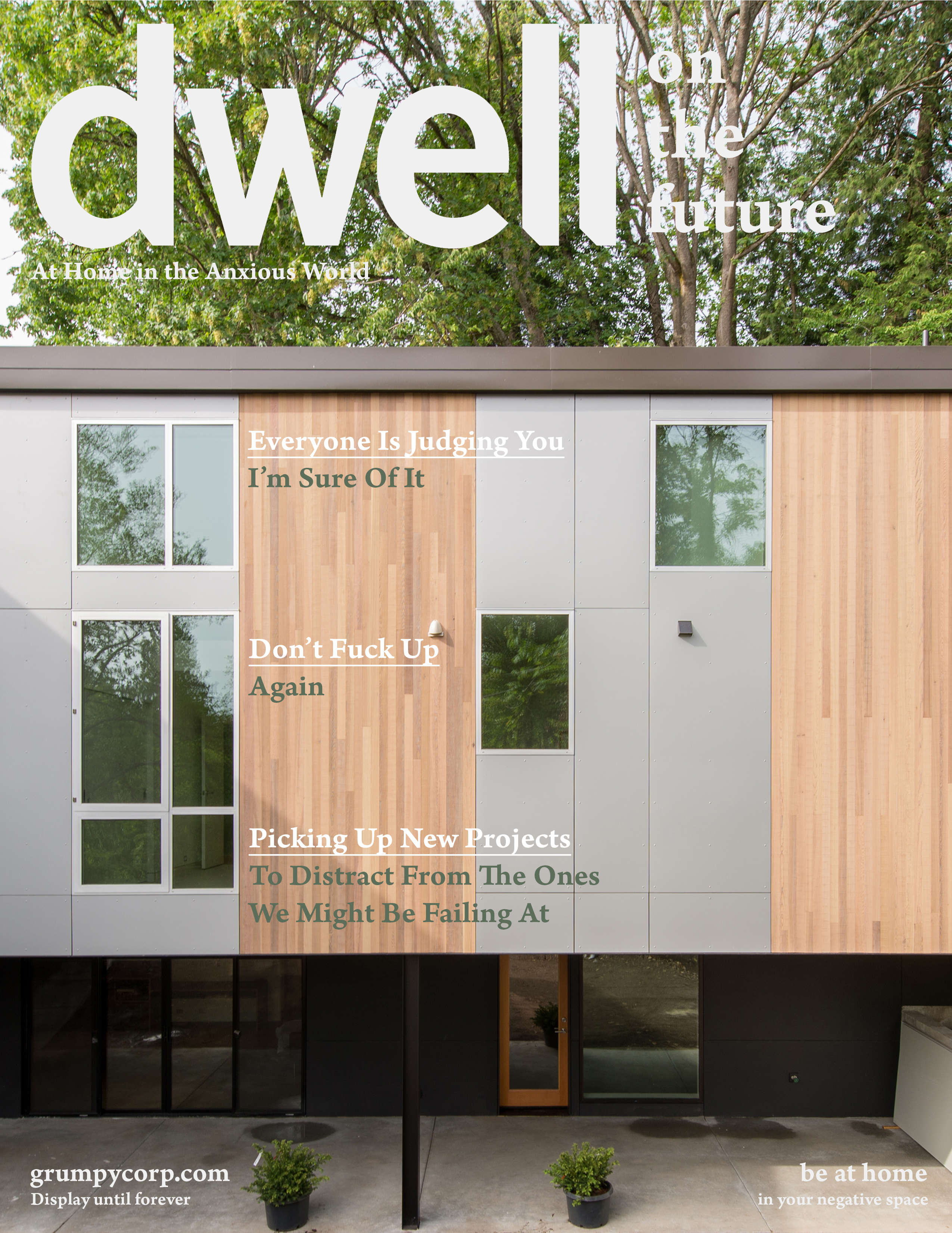 I crafted these fake DWELL covers based on my personal journey of dealing with lots of things. Enjoy.
